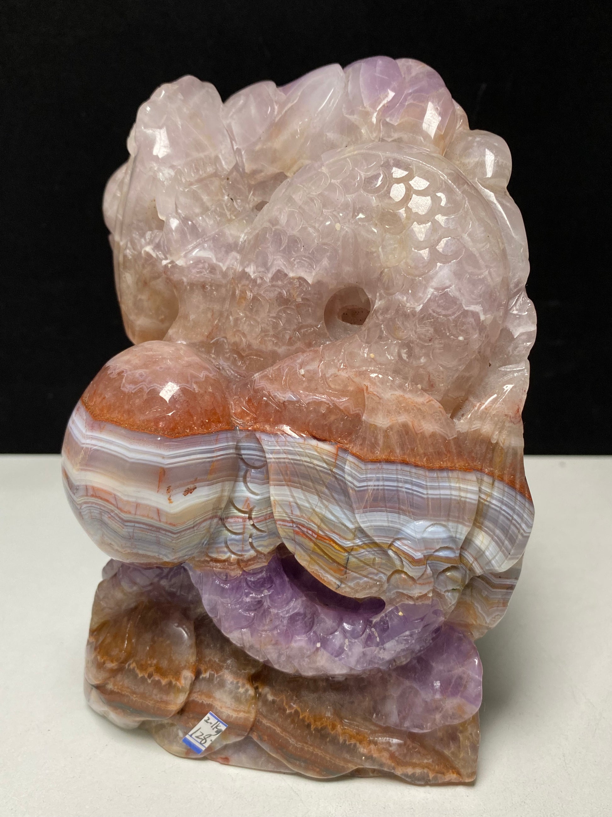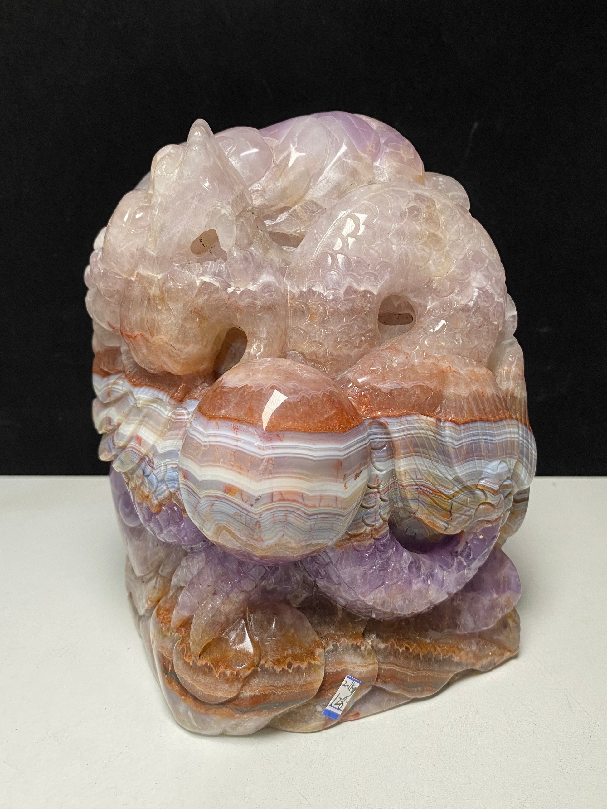 095-Amethyst agate Chinese dragon with ball carving#2100