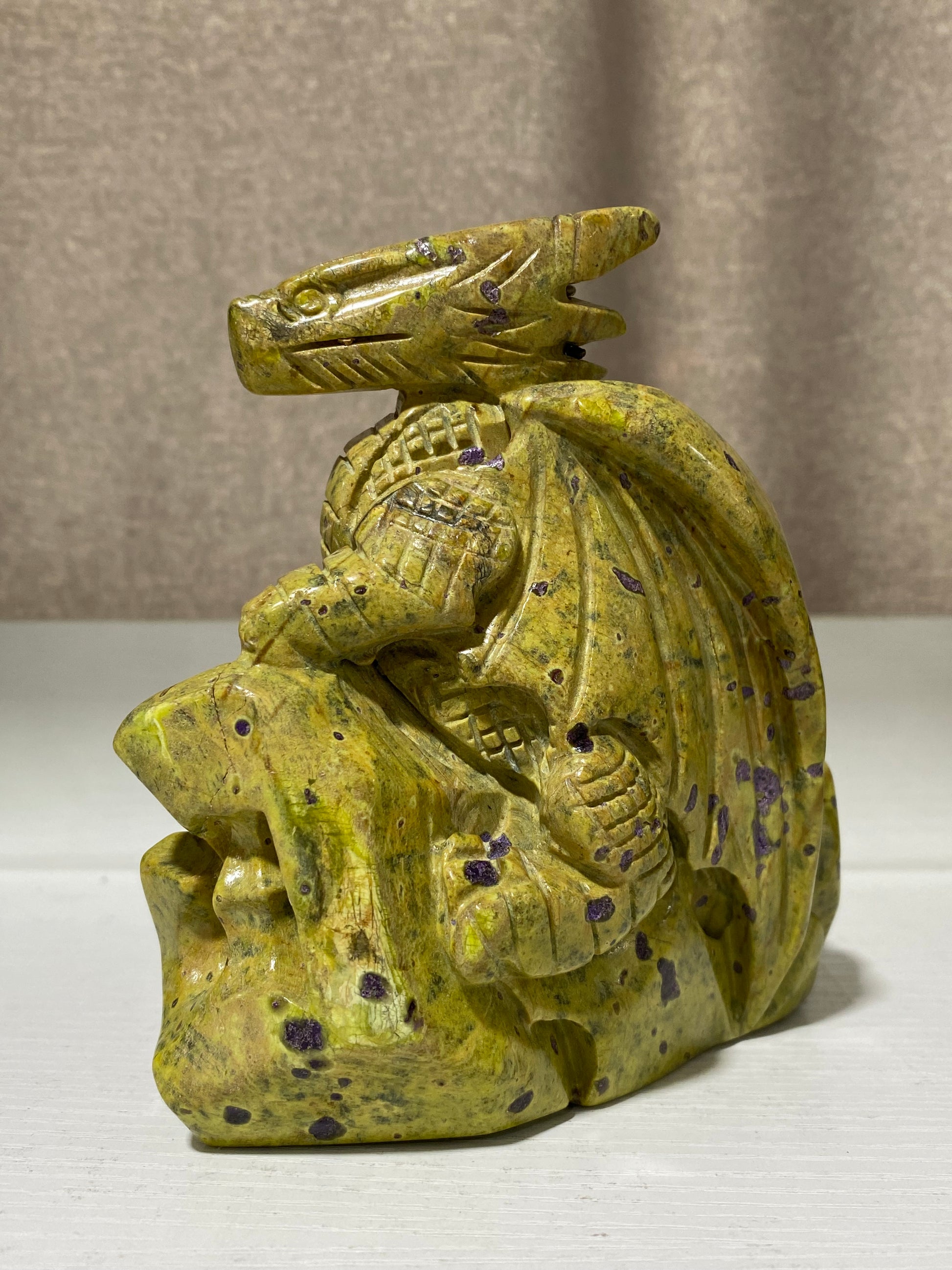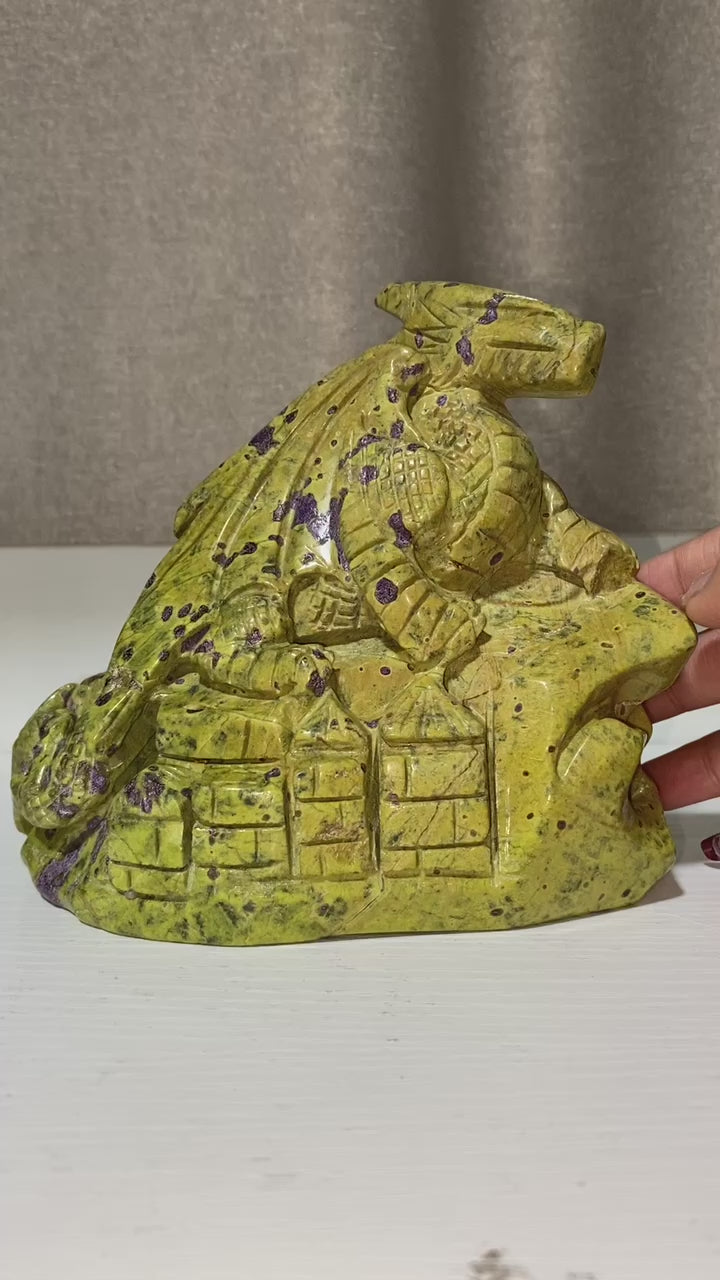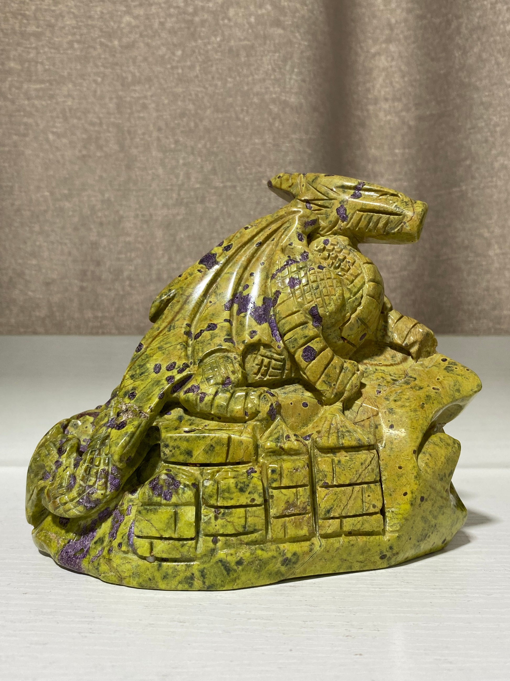 Atlantisite flying dragon on castle carving #1393