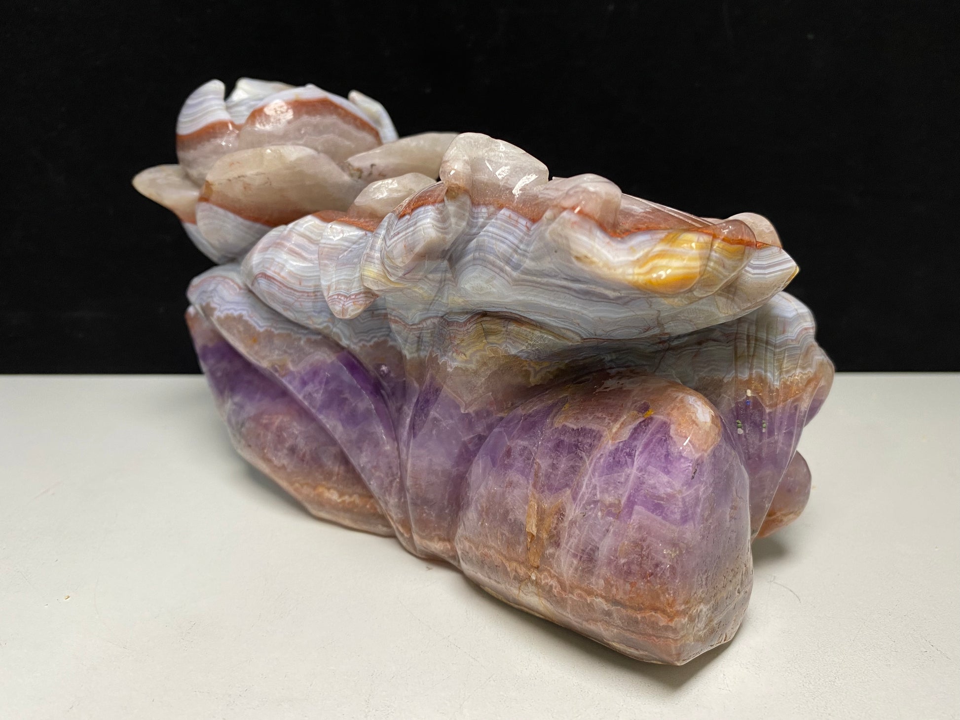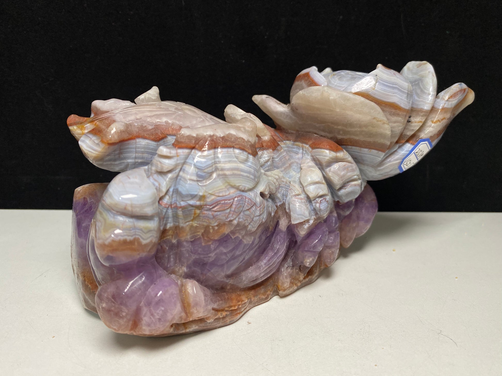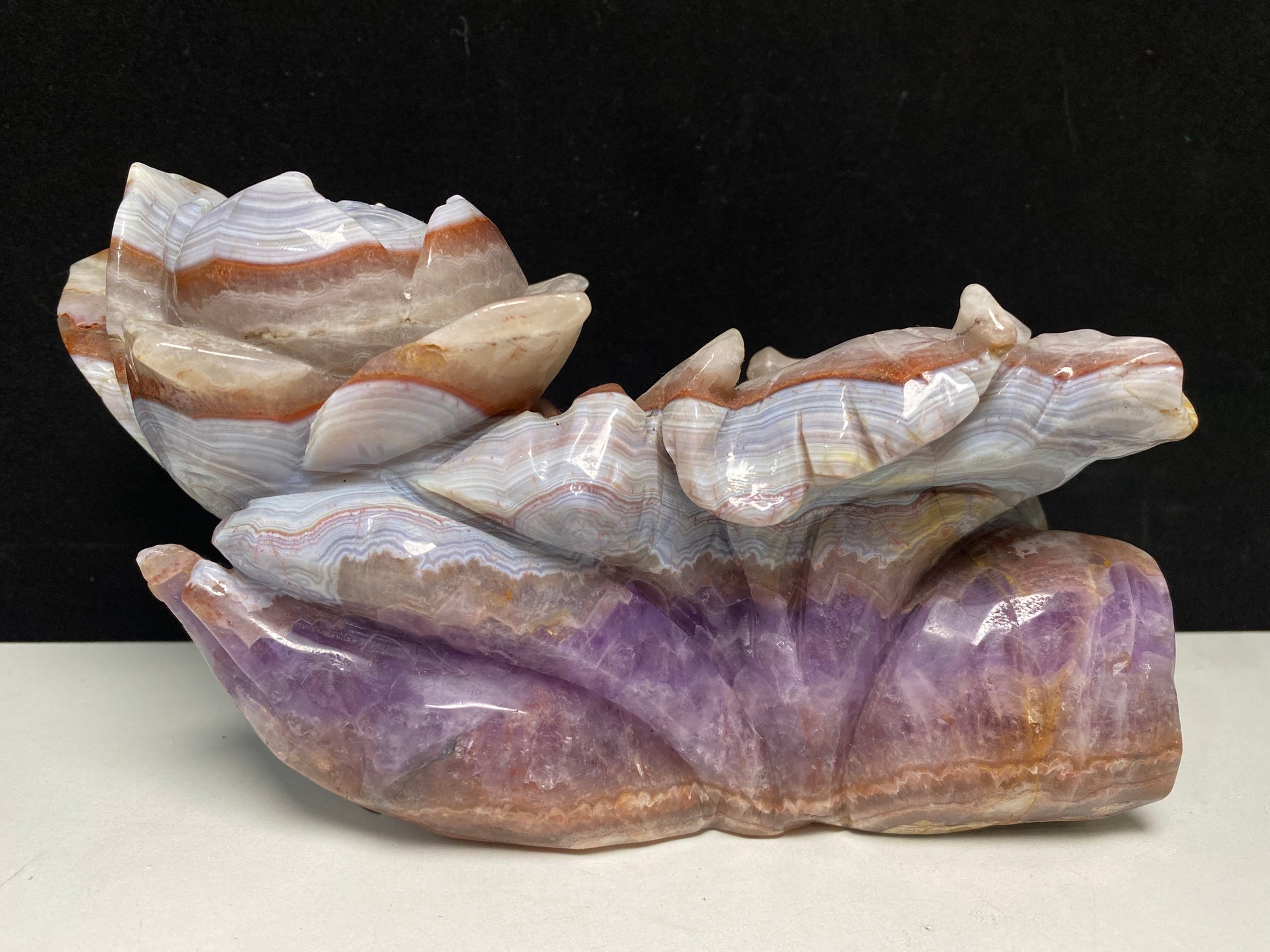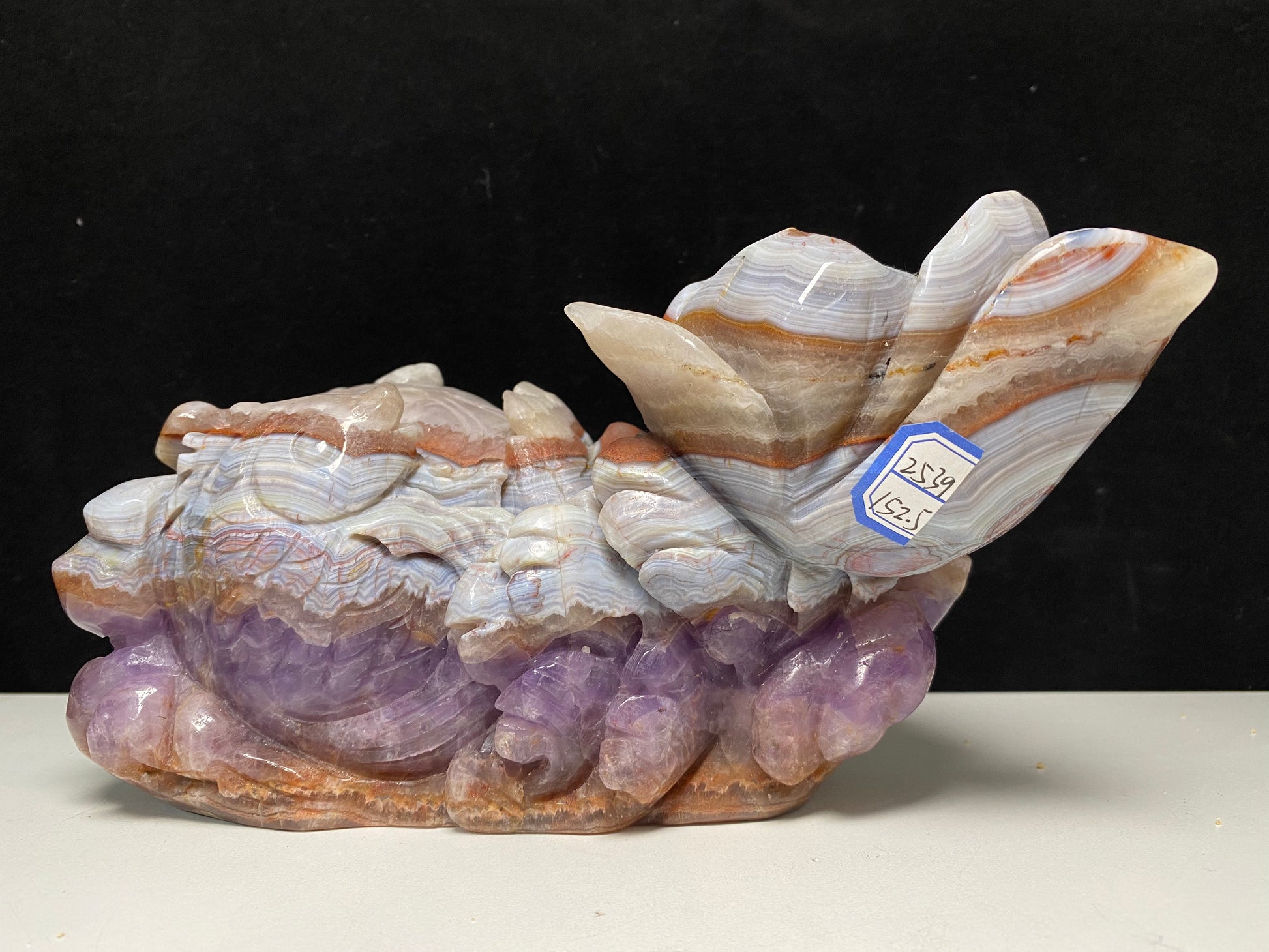 098-Banded amethyst agate fish with lotus carving #2539