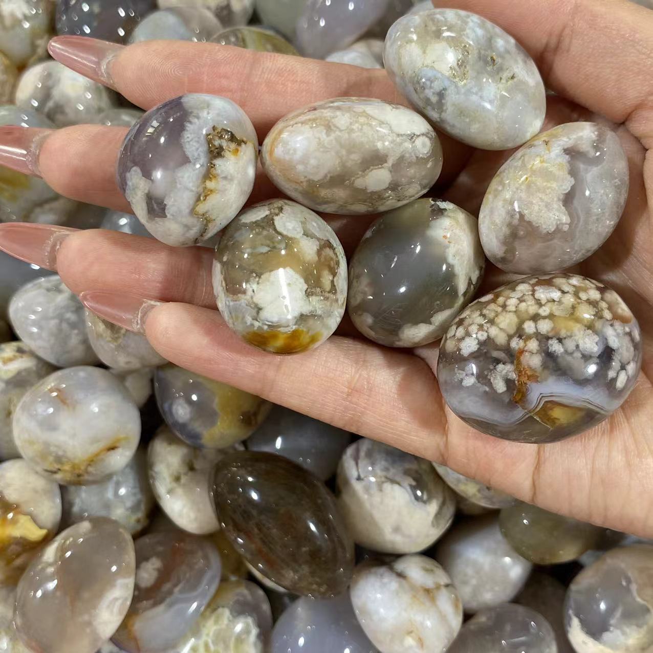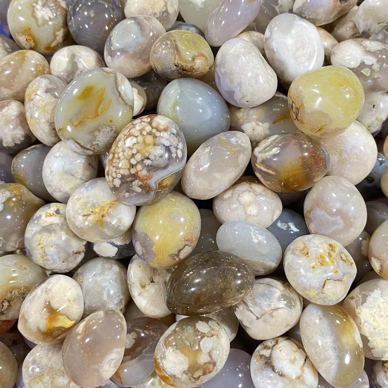 Black flower agate tumbles