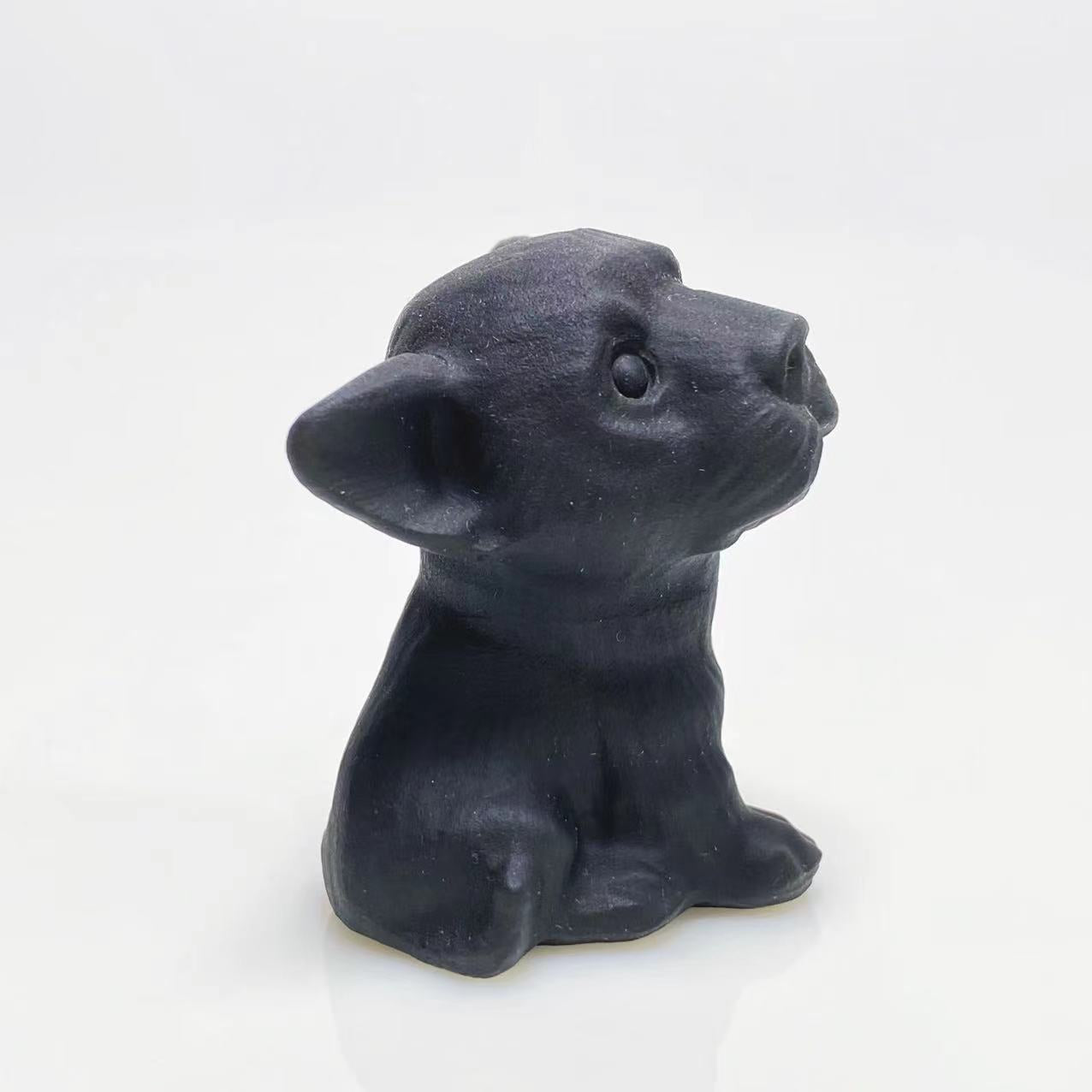 Black obsidian big head dog carving