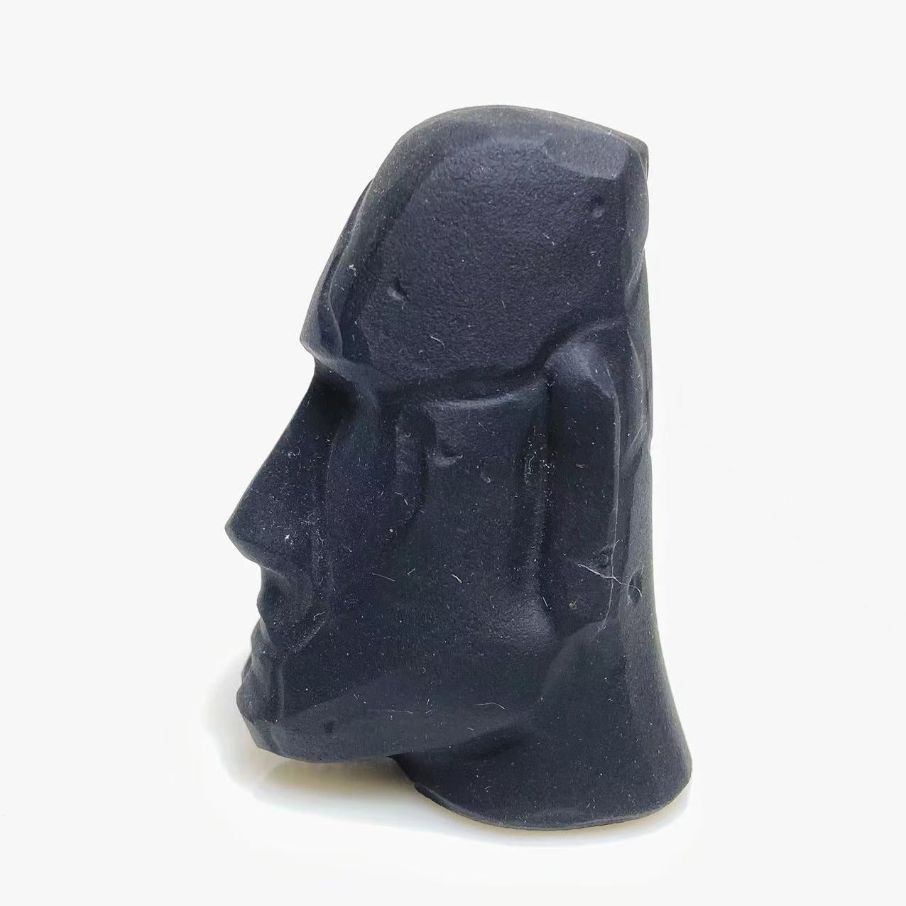 Black obsidian stone face carving