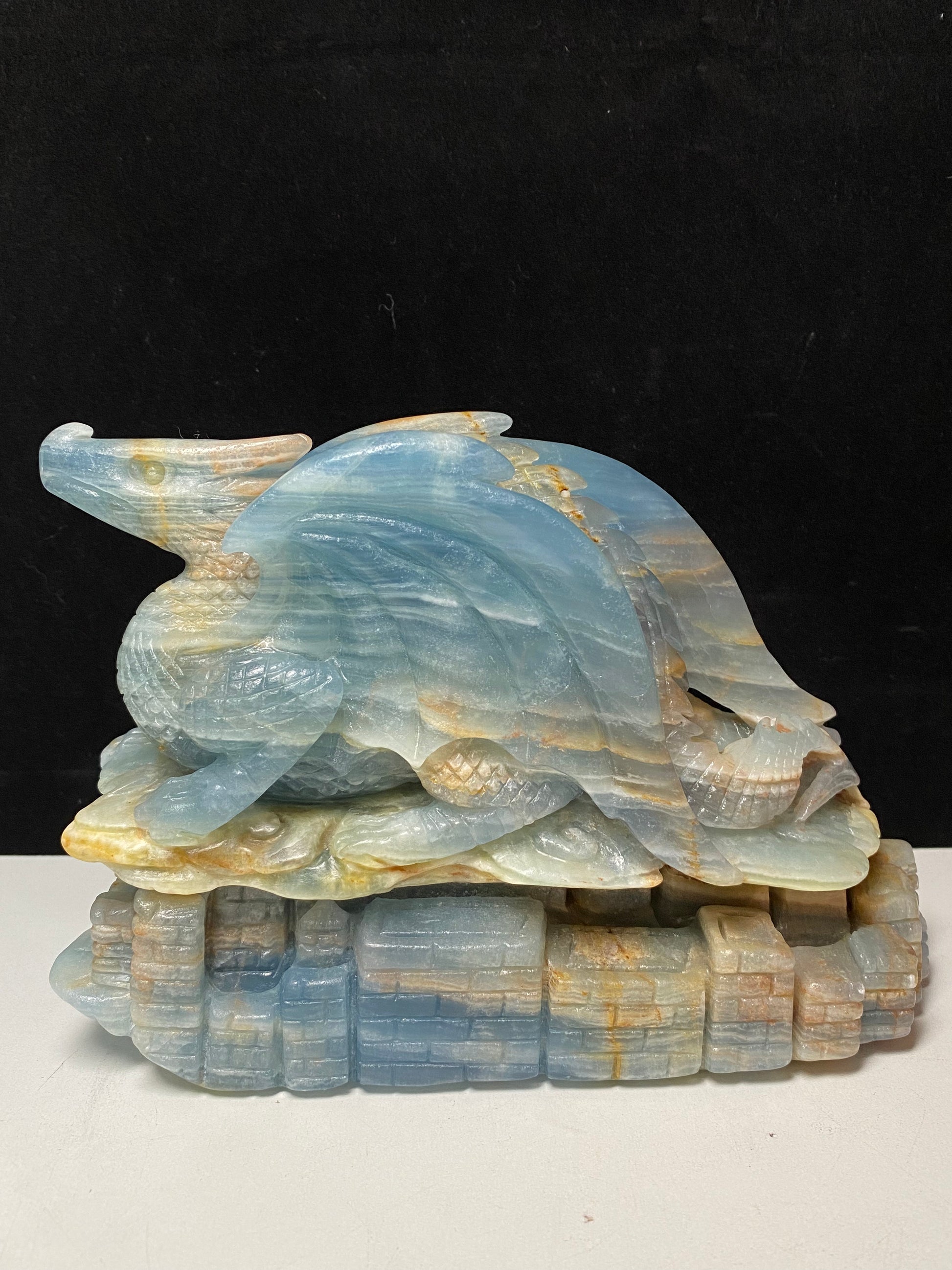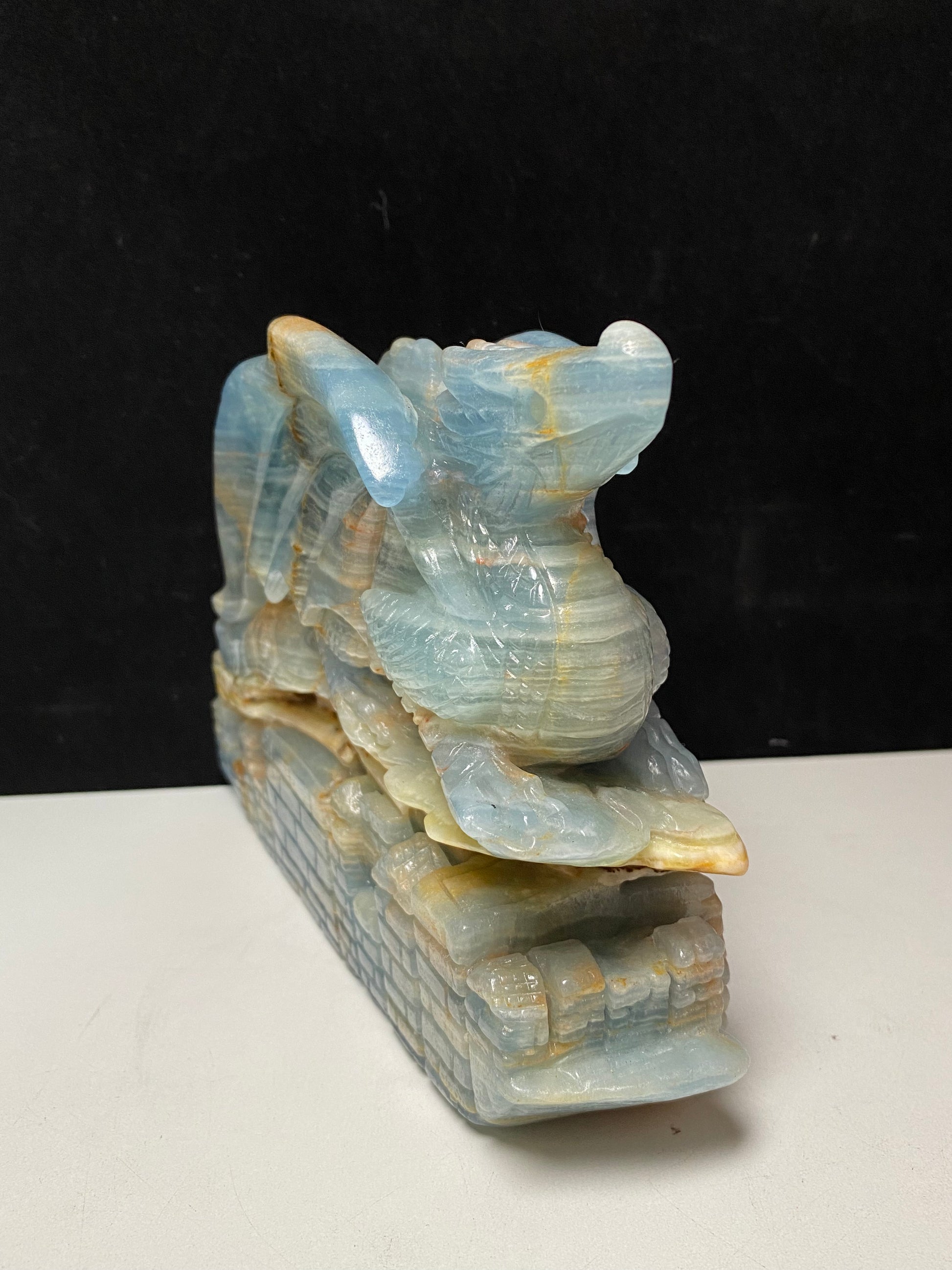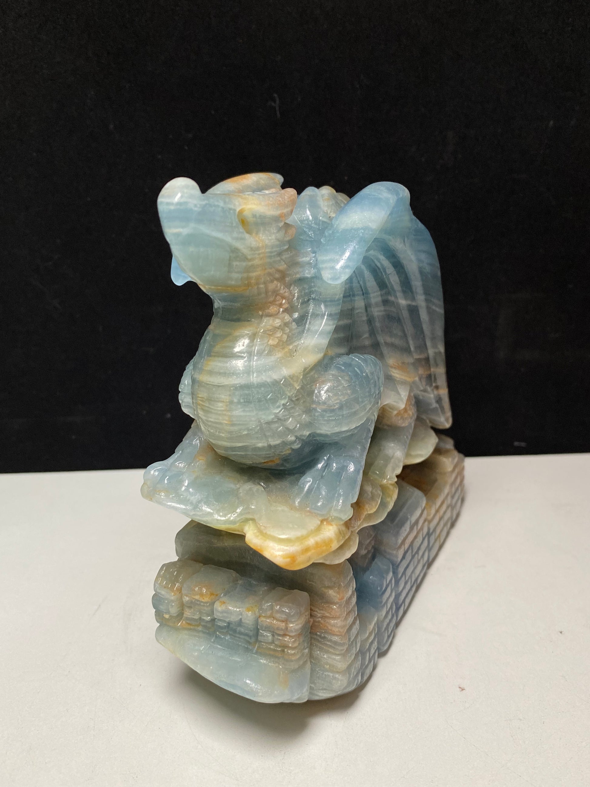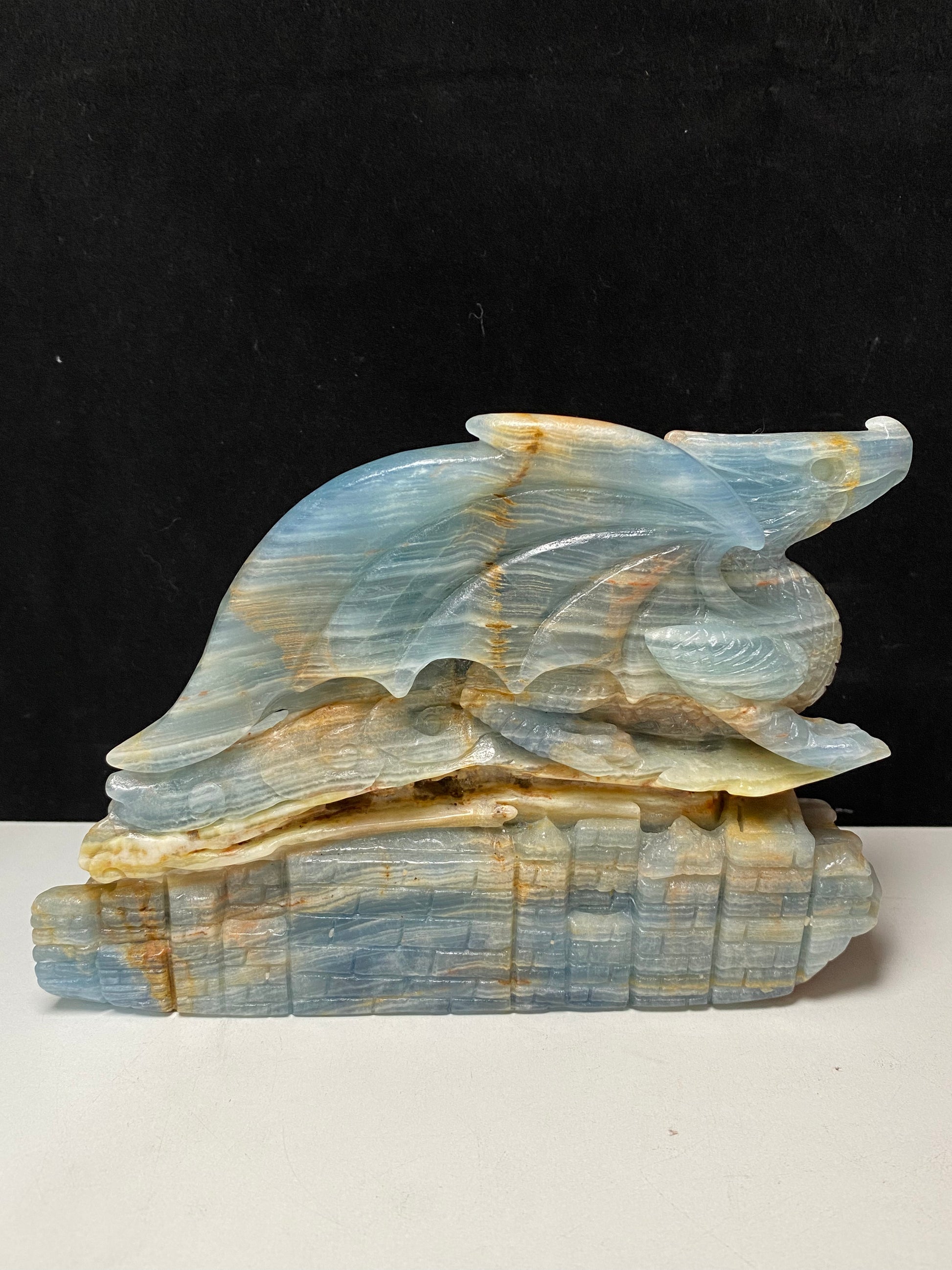 Blue onyx flying dragon on castle #2066