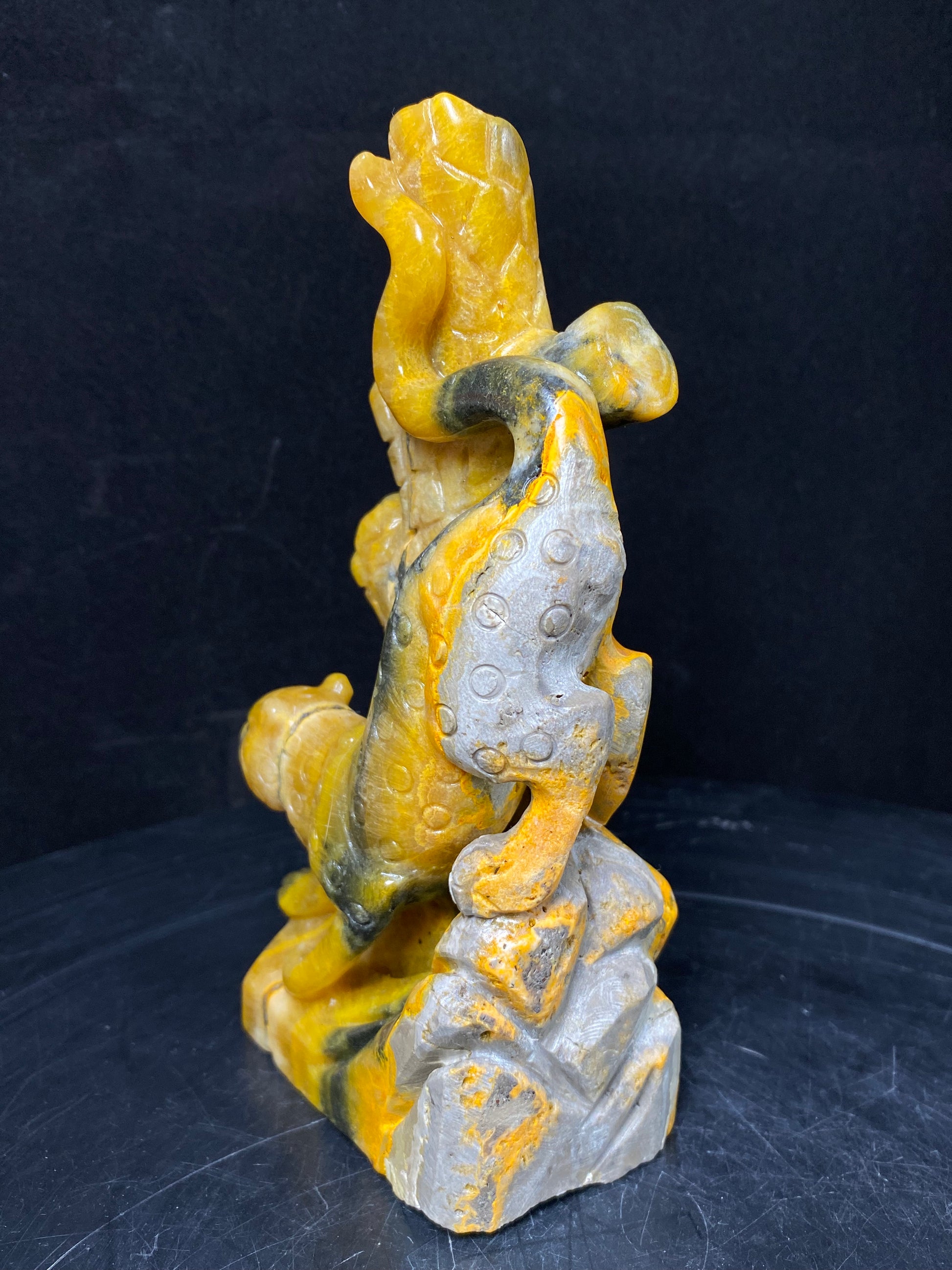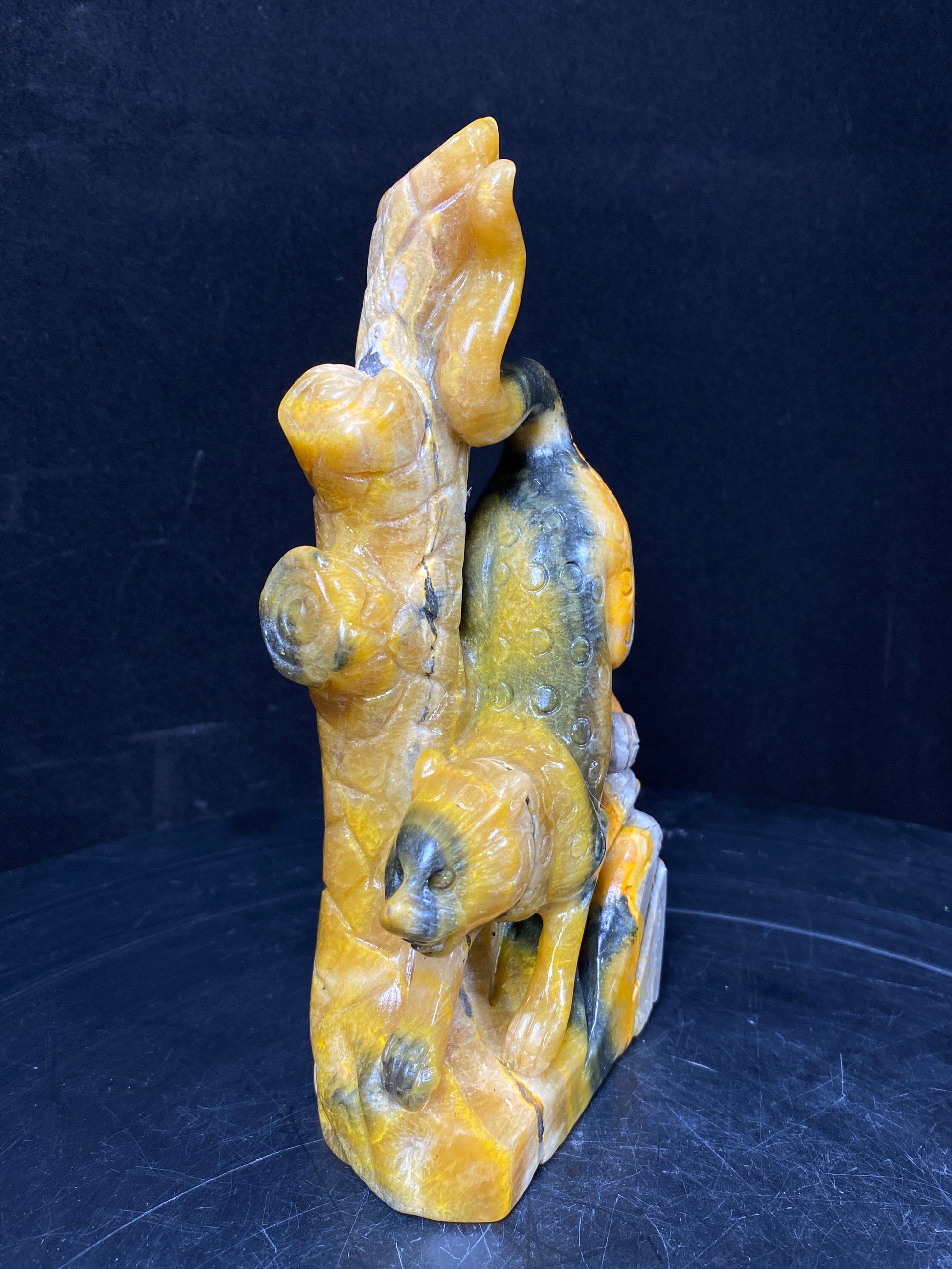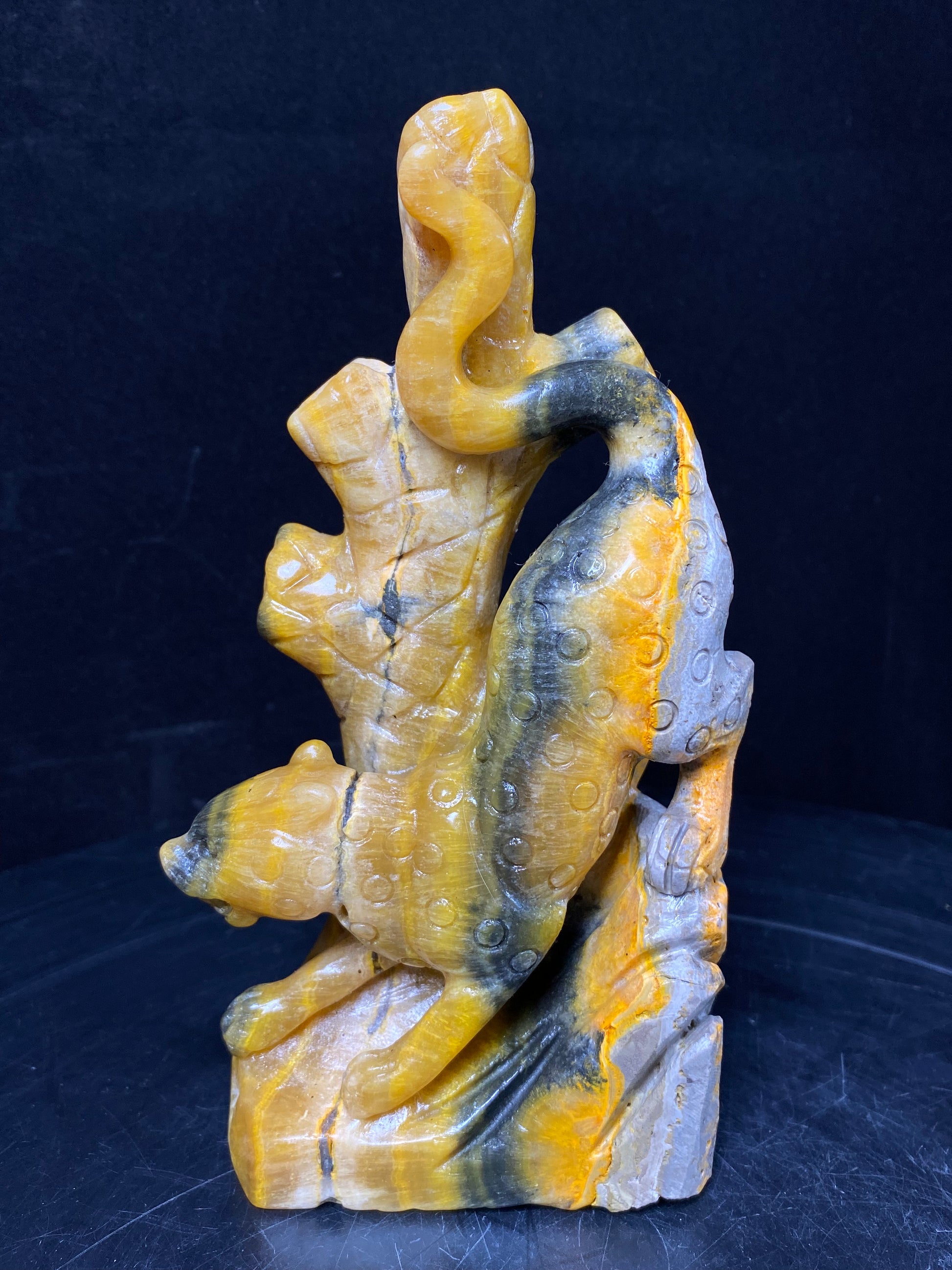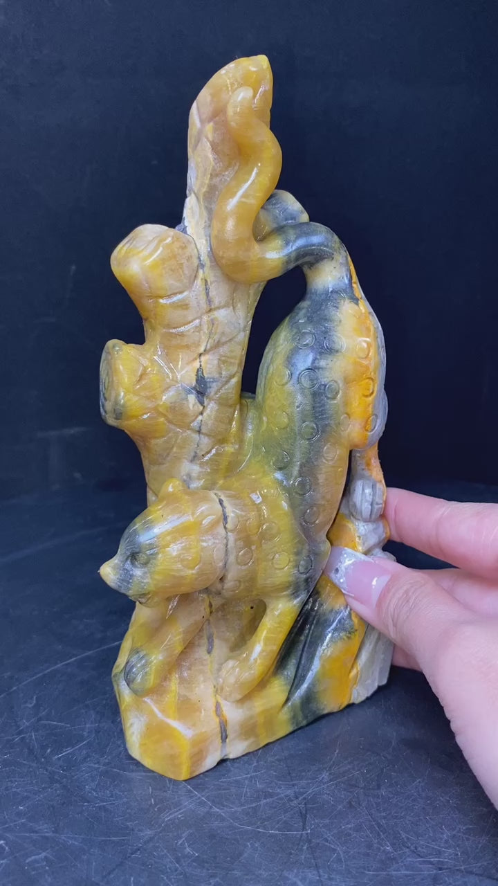 131-Bumble bee jasper leopard carving #0757