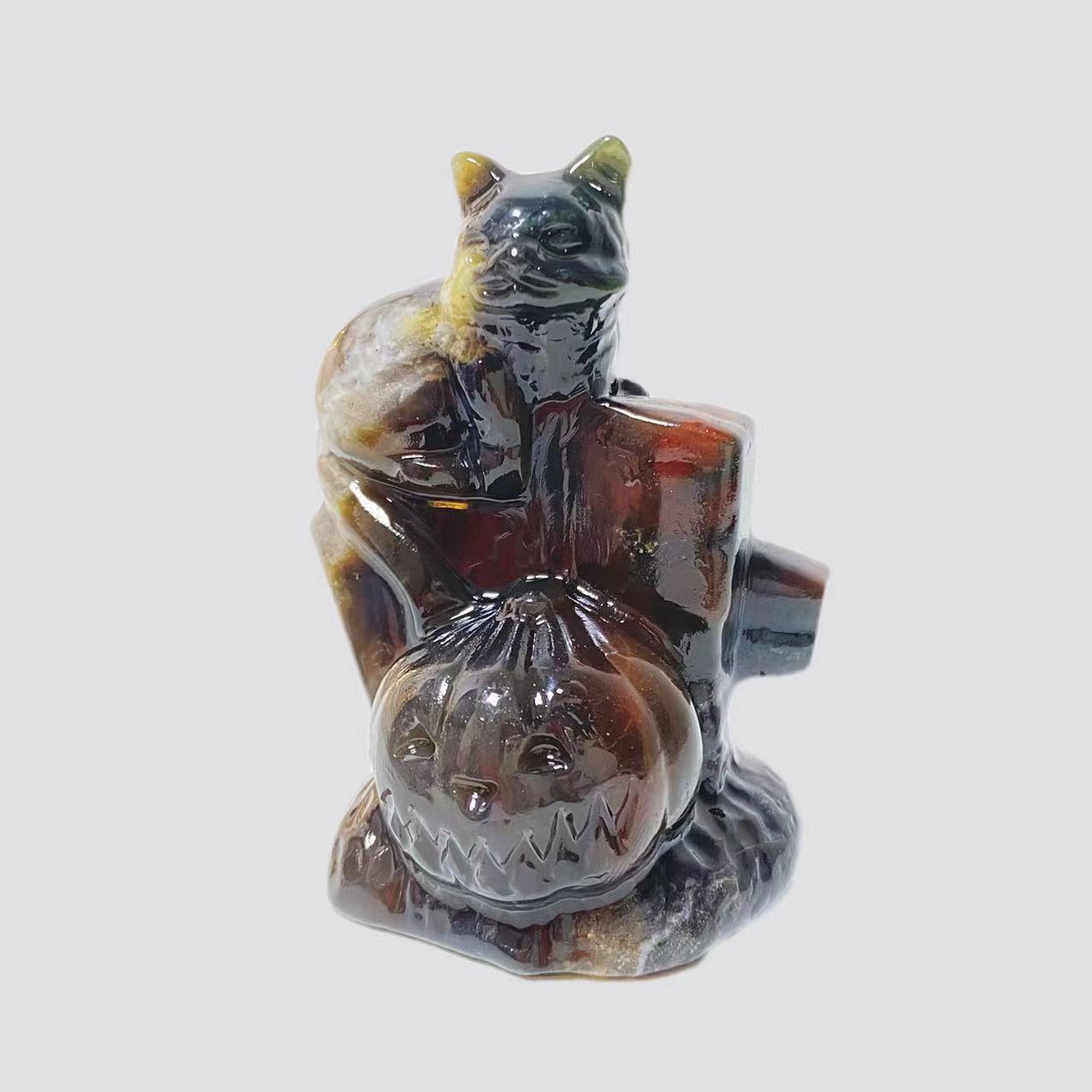 Cat with pumpkin carving