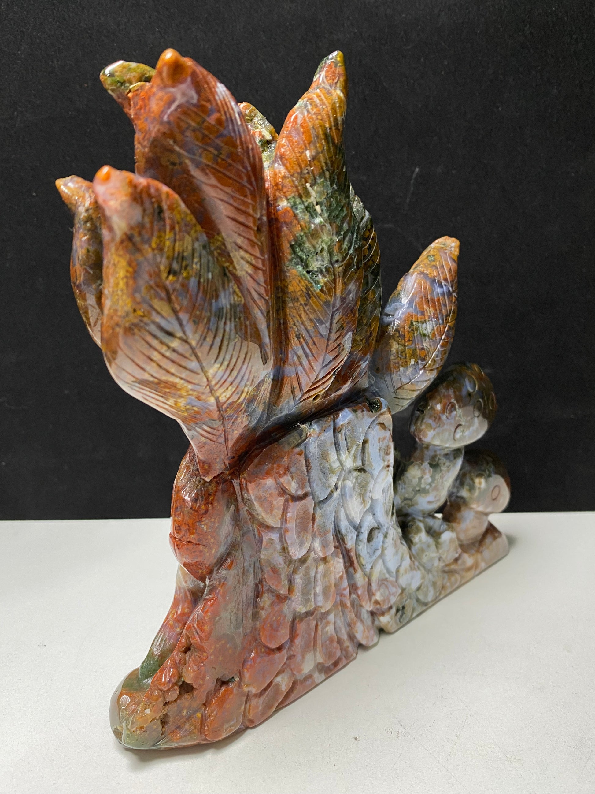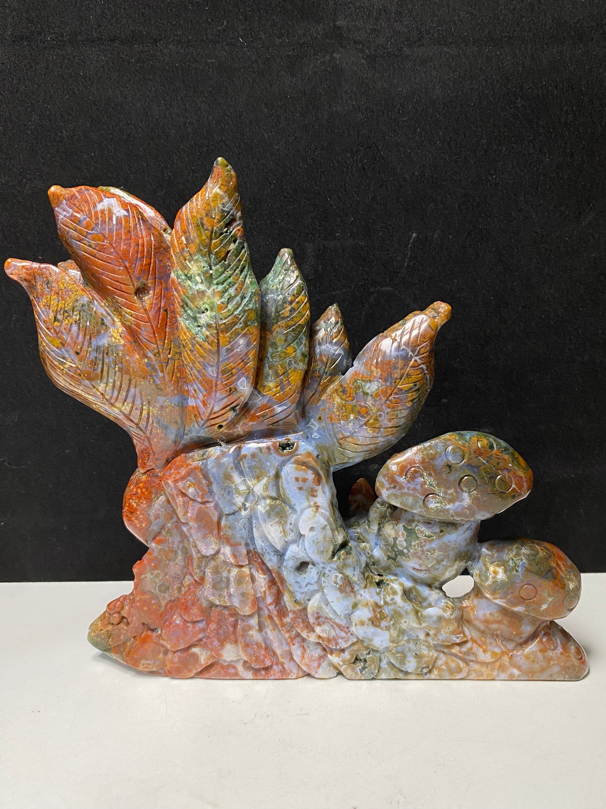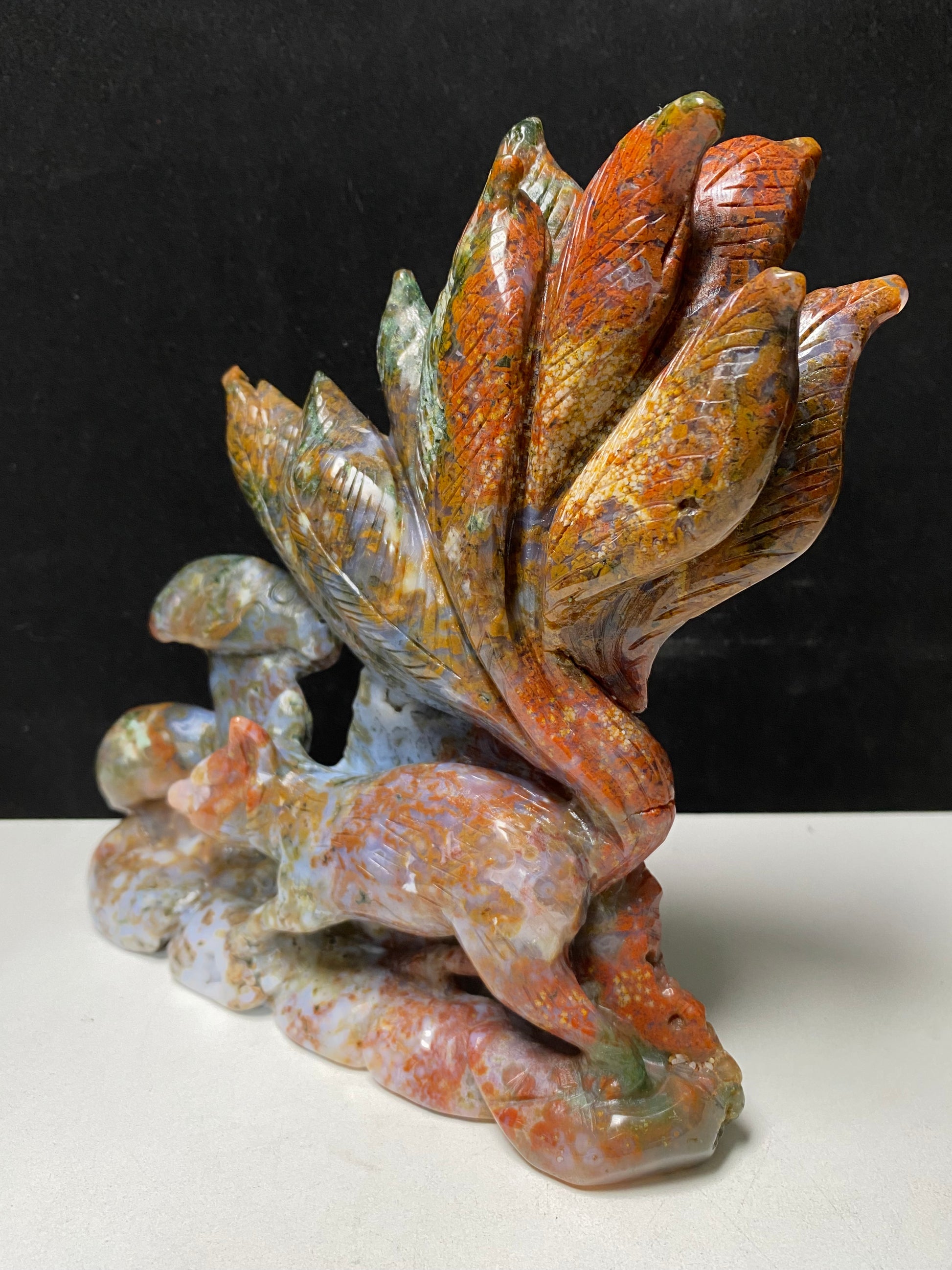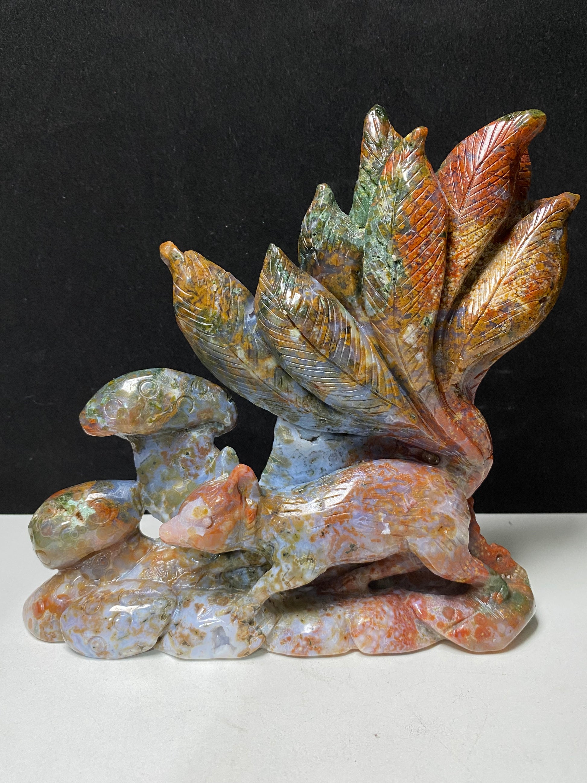 081-Colorful ocean jasper nine-tails fox carving #1088