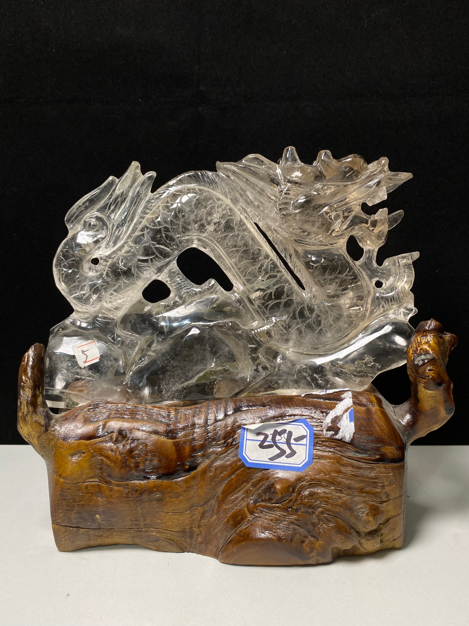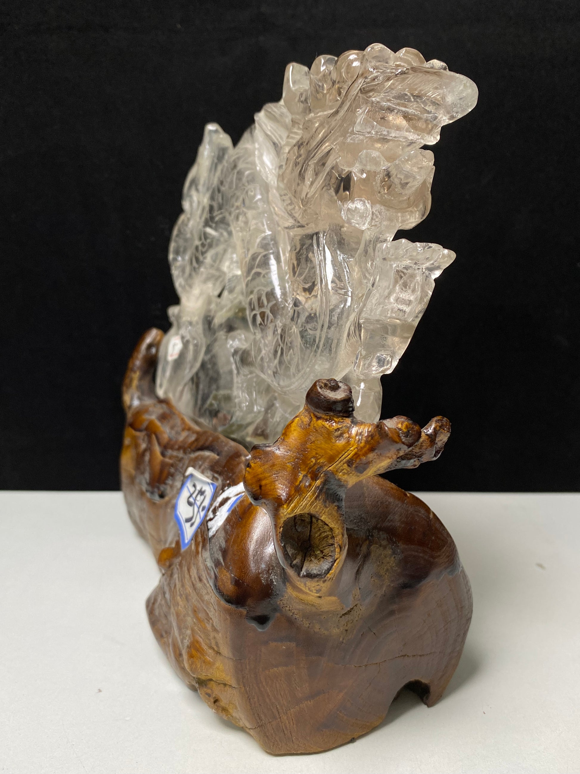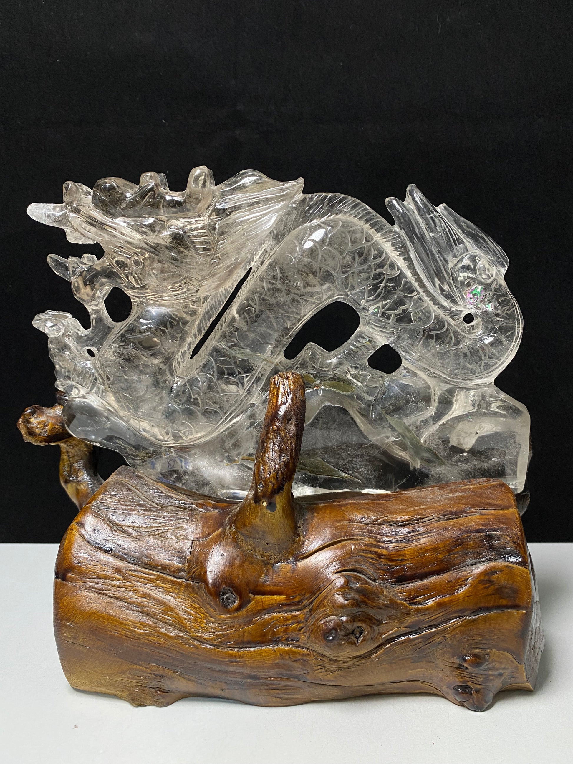 Garden quartz Chinese dragon on wooden stand#1285