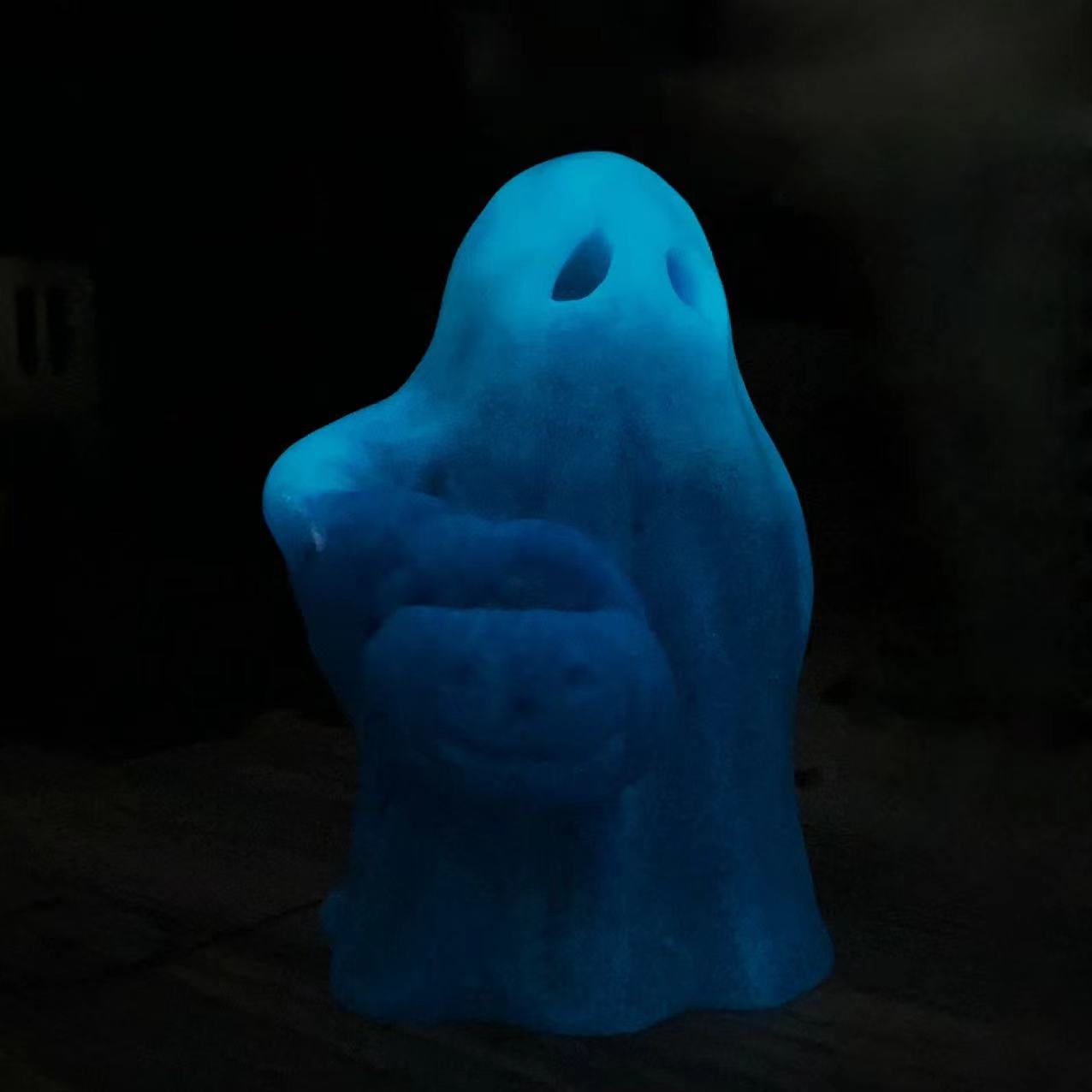 Luminous ghost with pumpkin carving