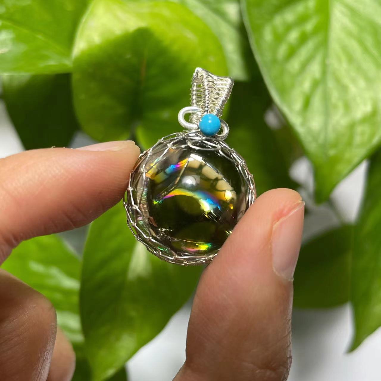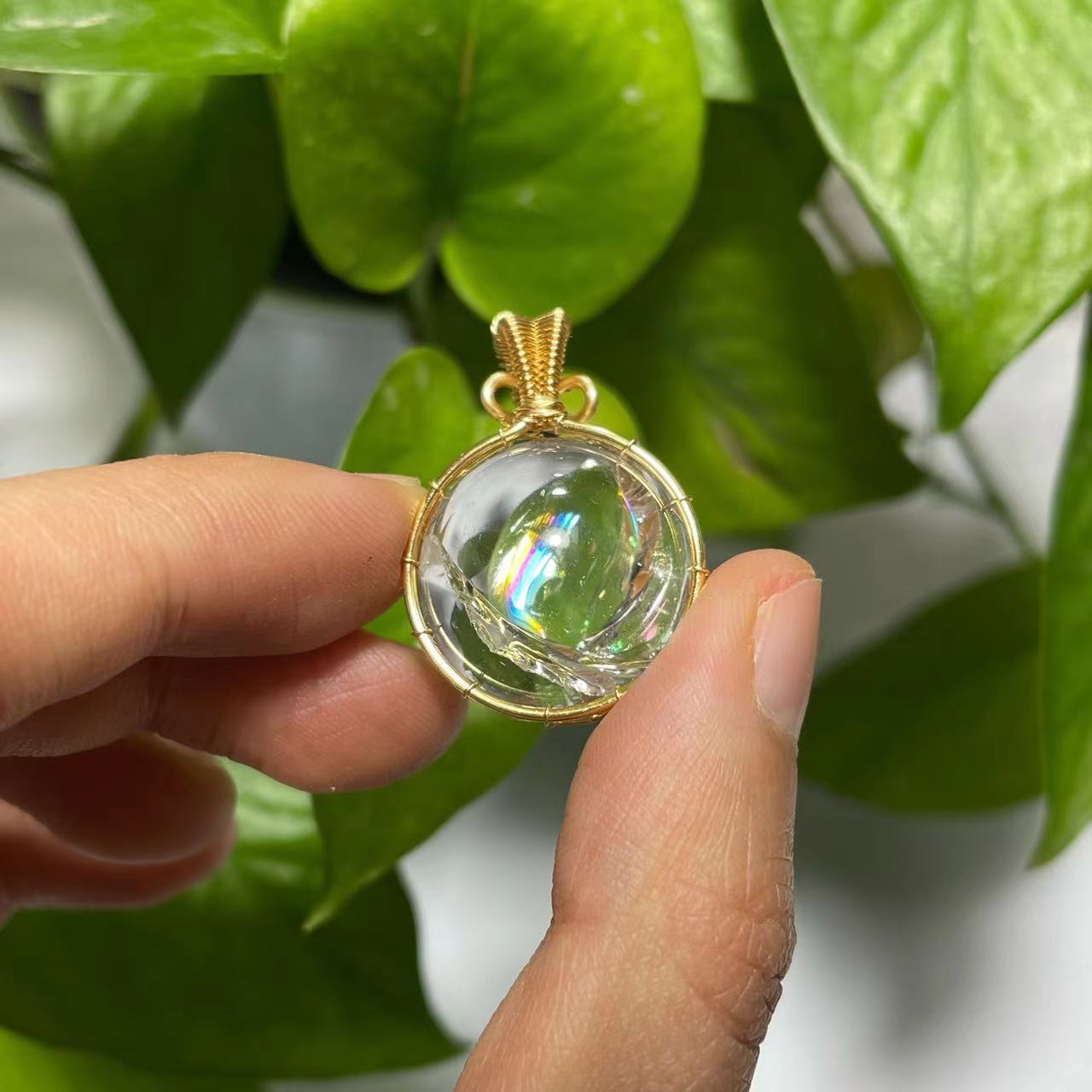 Rainbow smoky quartz and clear quartz pendant