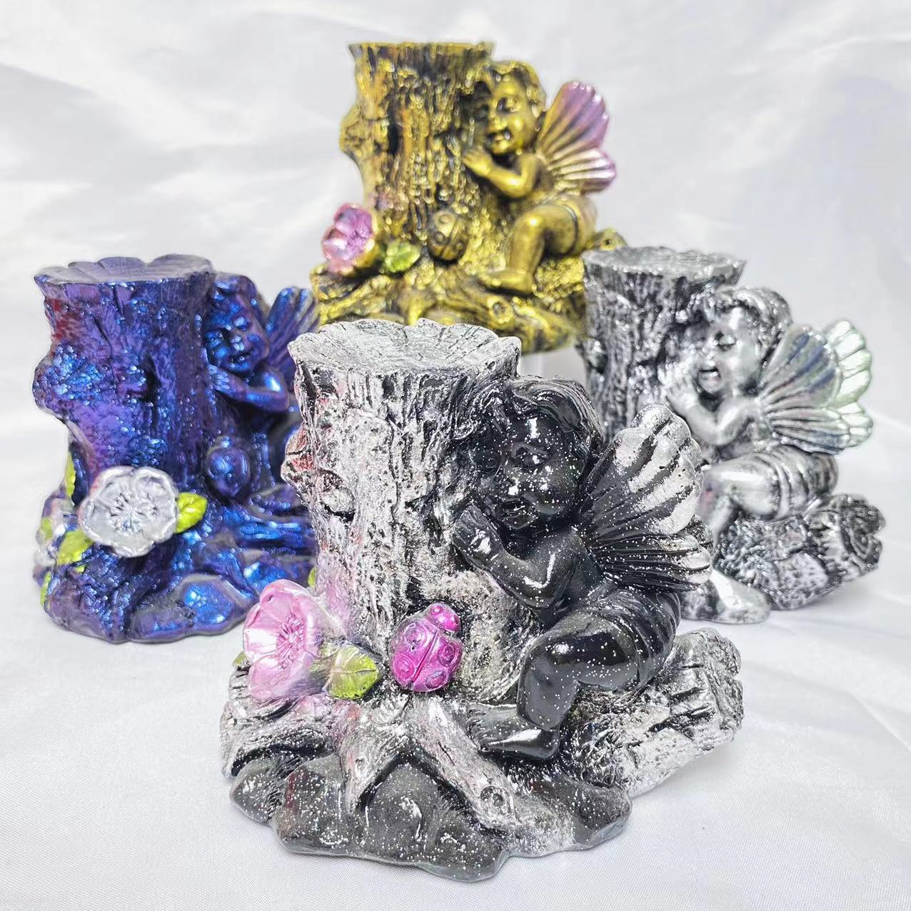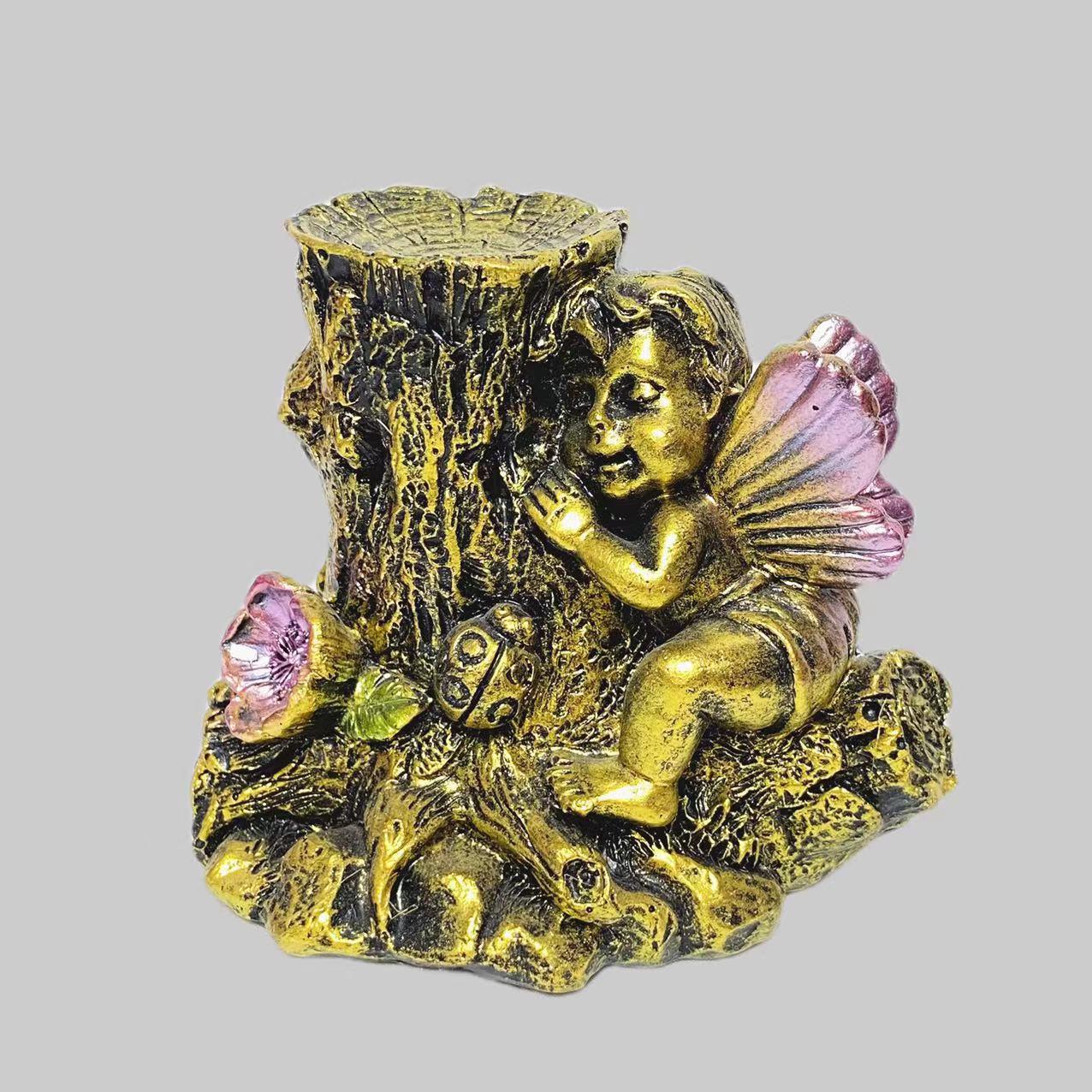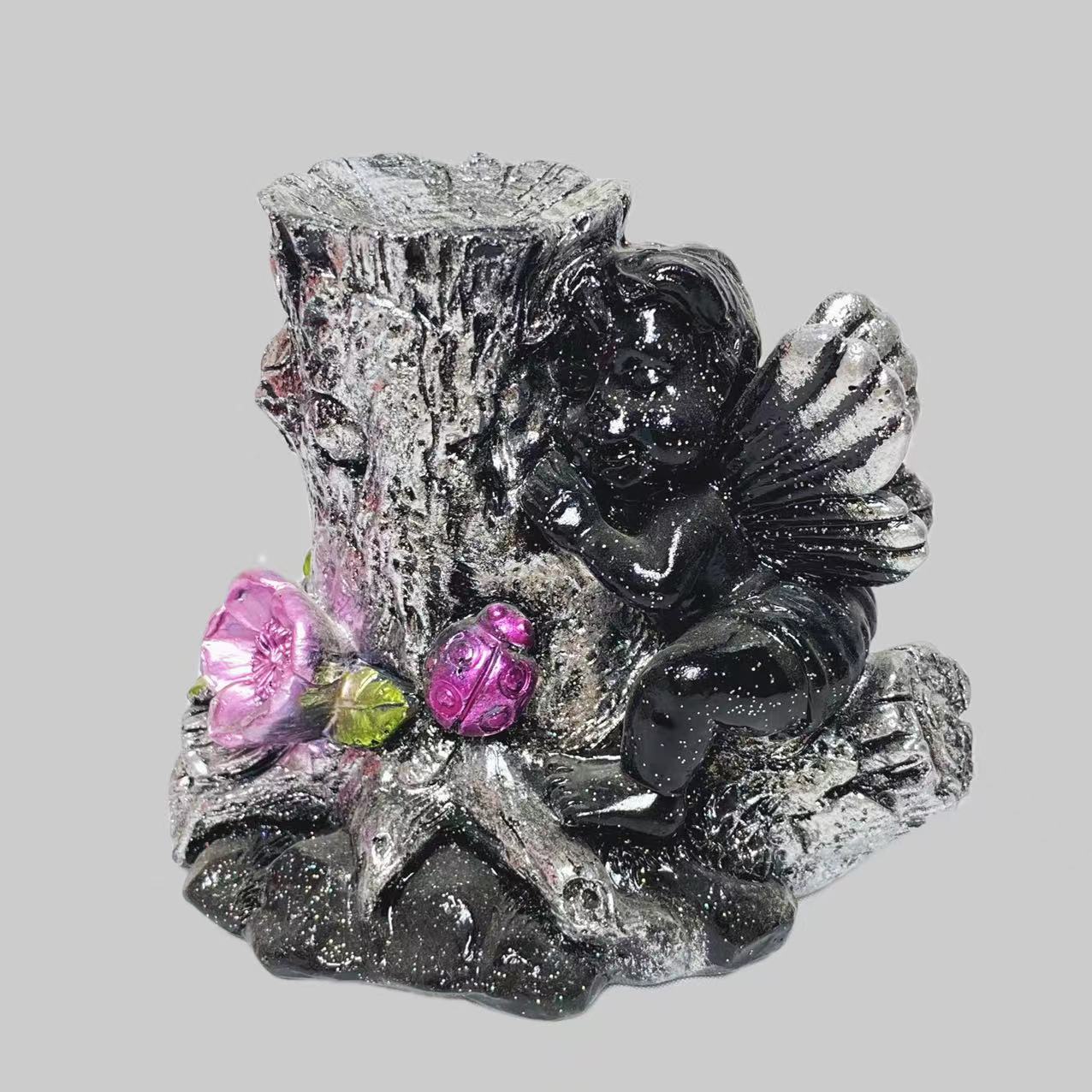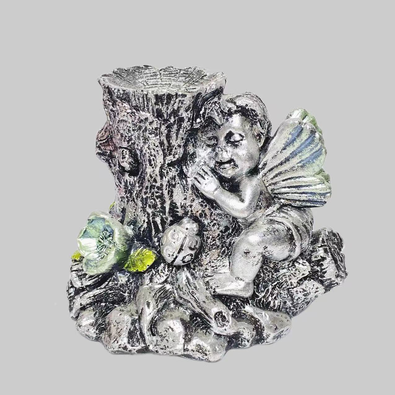 Resin angel with tree sphere stand