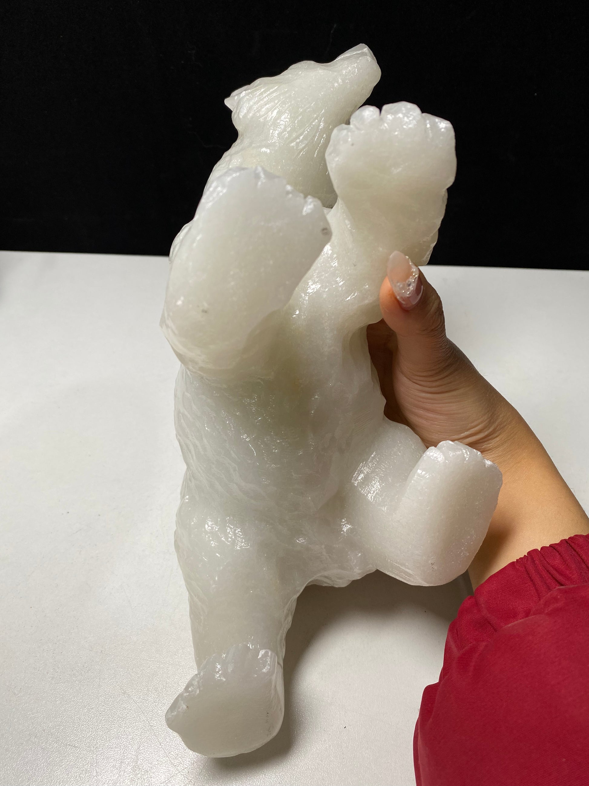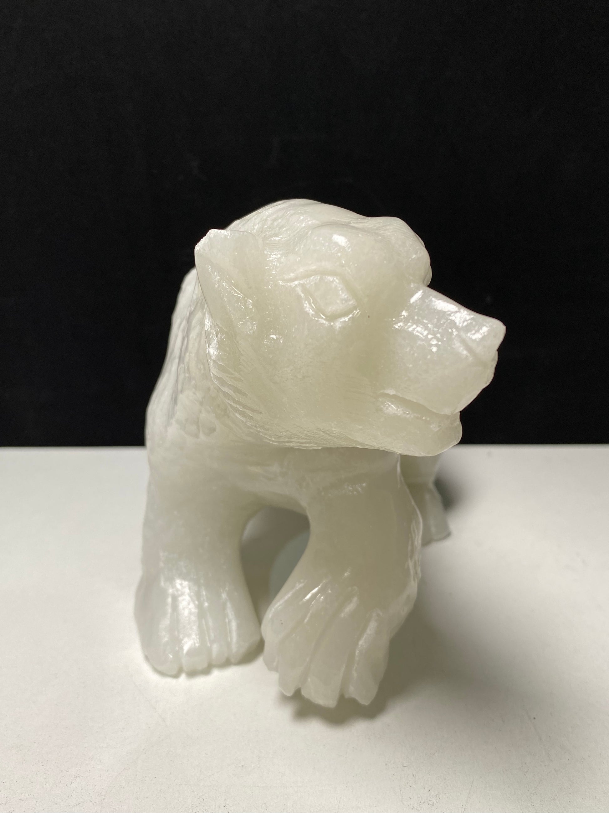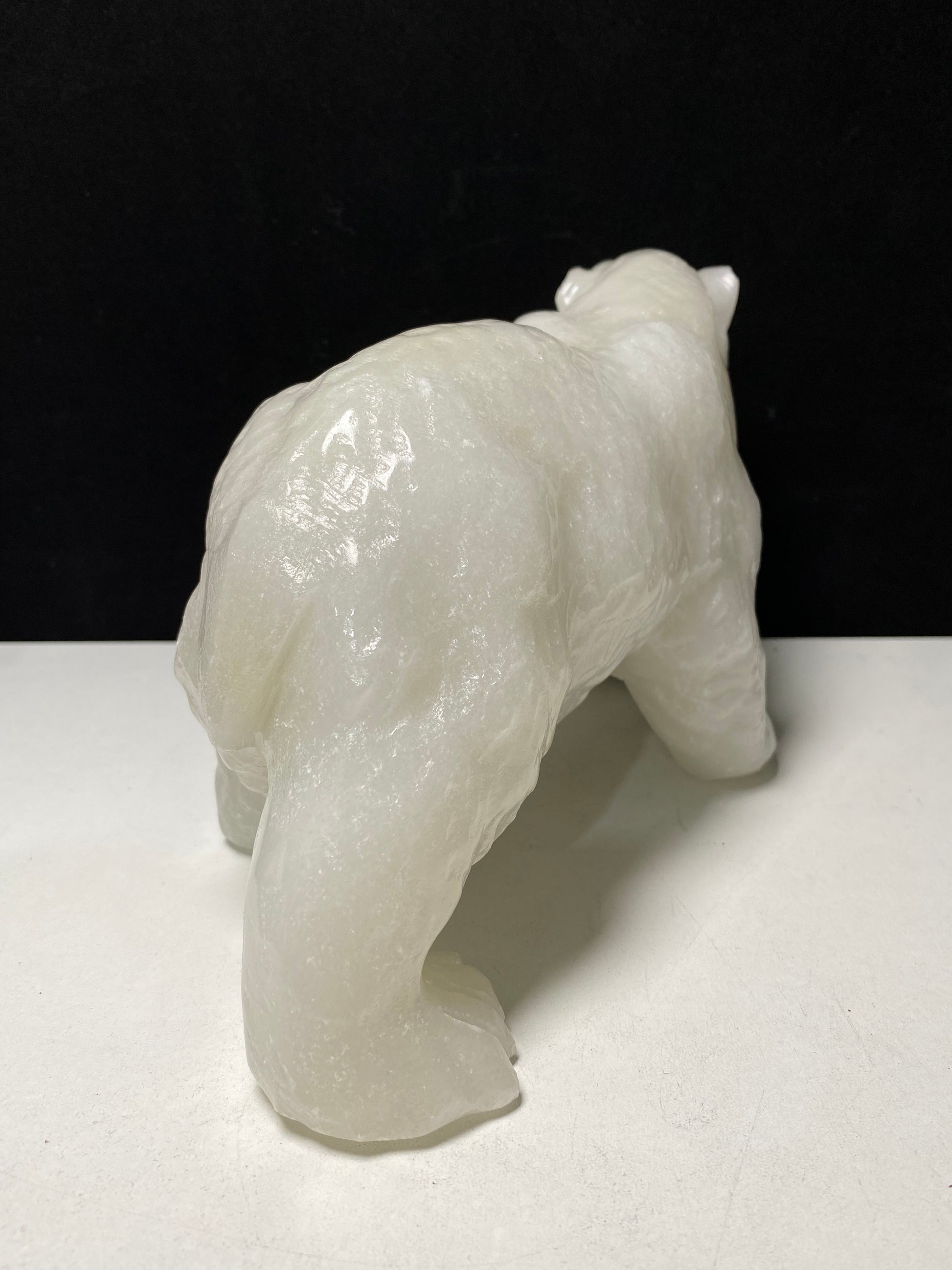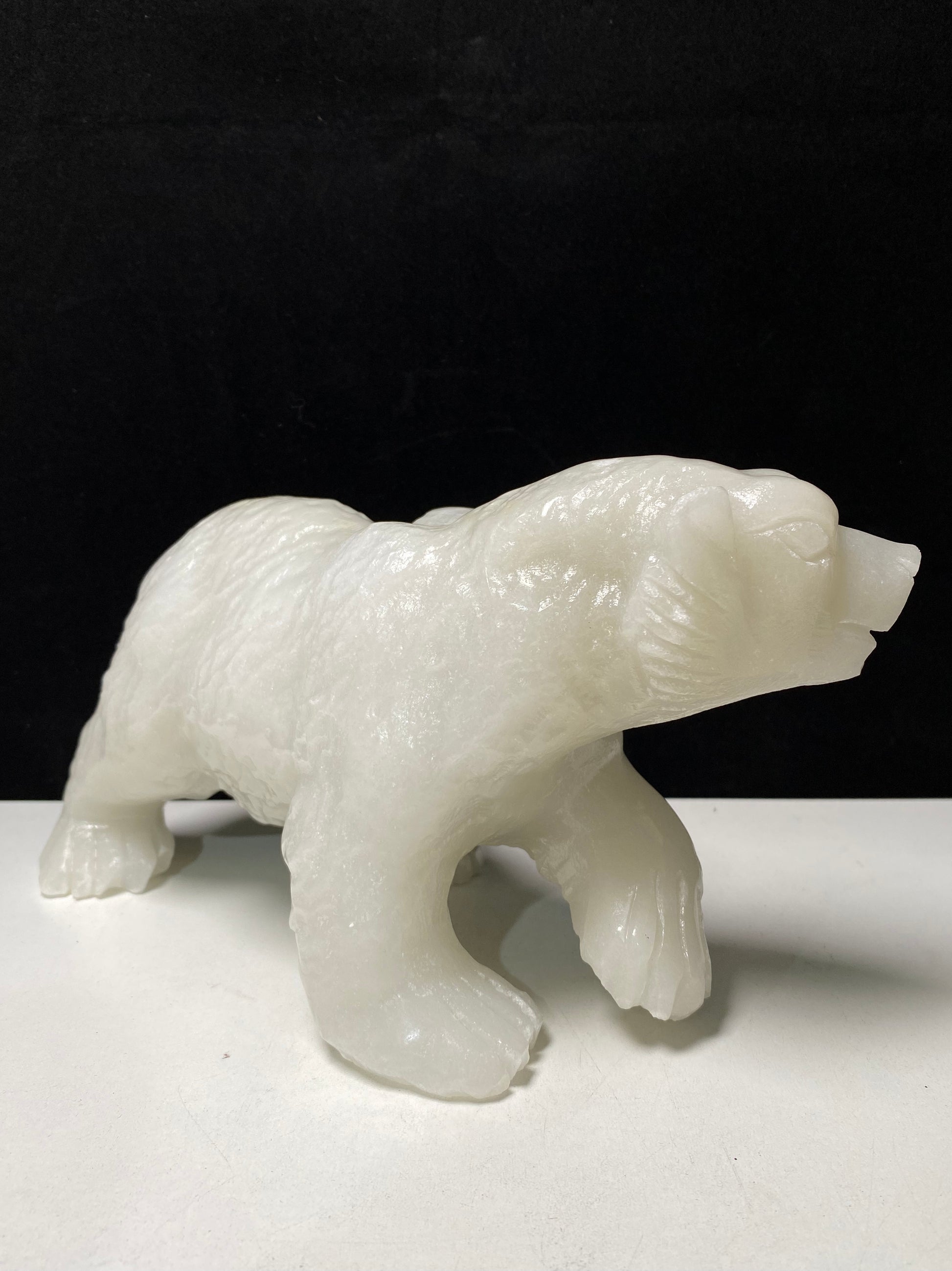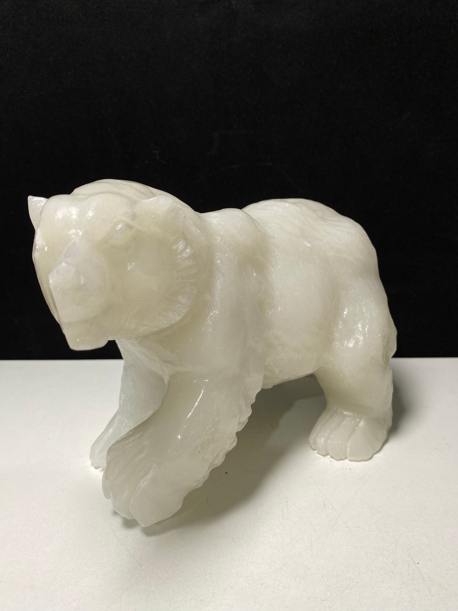 White jade polar bear carving#2700